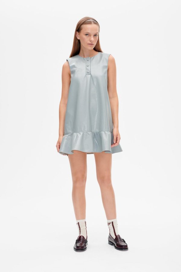 Baum und Pferdgarten Agneta Mini Dress | Recycled Polyester Shift Dress with A-Line Cut in Griffin Grey