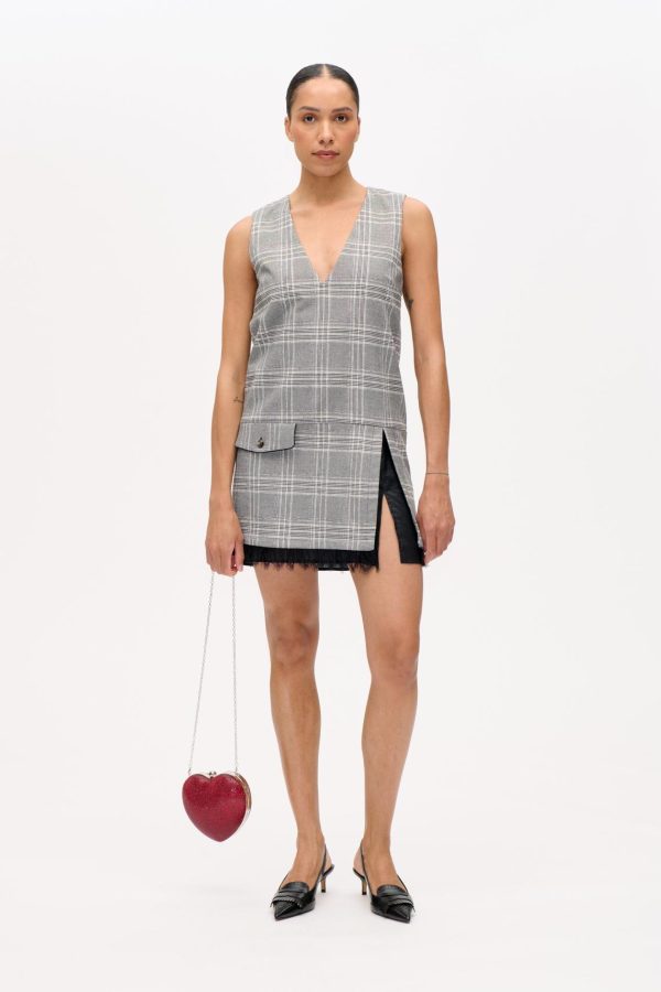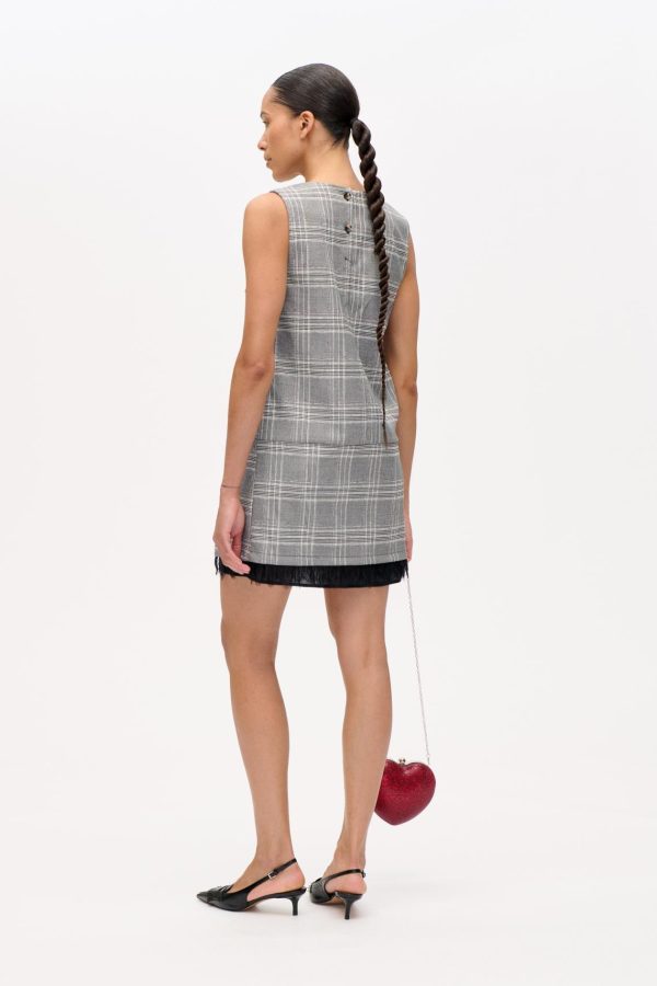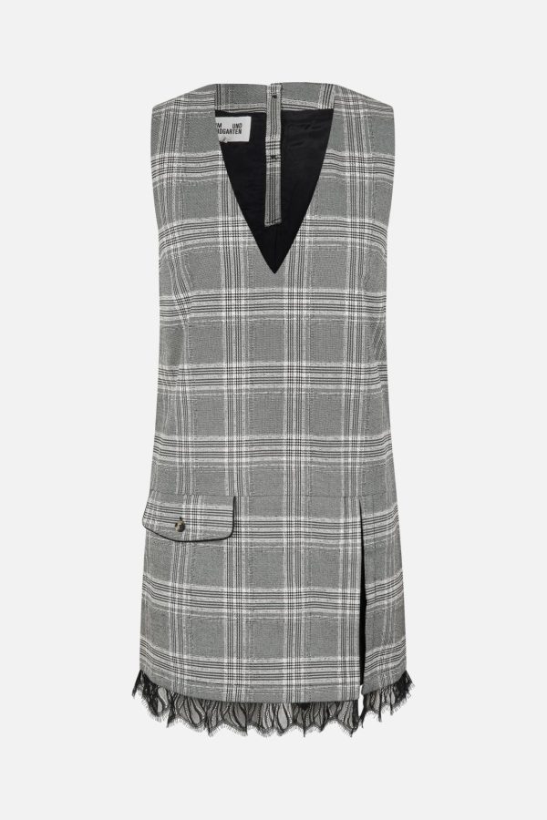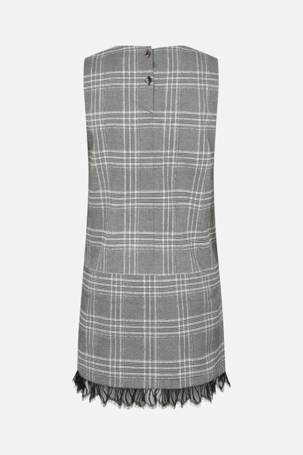 Baum und Pferdgarten Ahana Dress – Black & White Check Mini Dress with Lace Detail