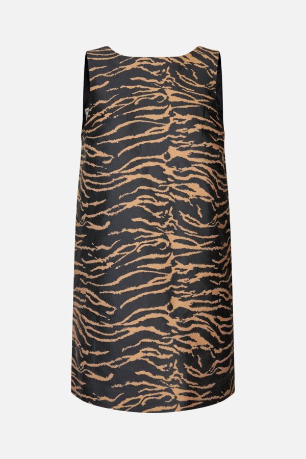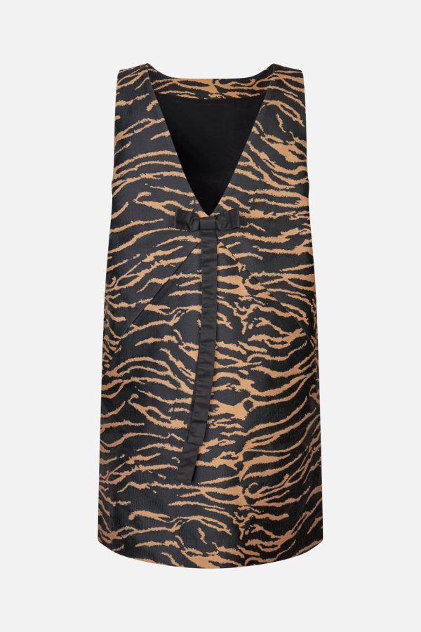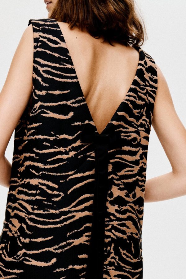 Baum und Pferdgarten Avona Dress – Cinnamon Zebra Jacquard Mini Dress with V-Back Bow