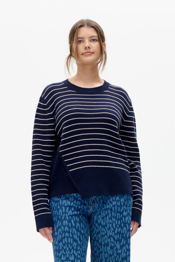 Baum und Pferdgarten CENTA Women’s Striped Knit Sweater with Asymmetrical Hem
