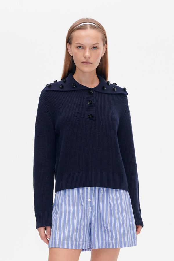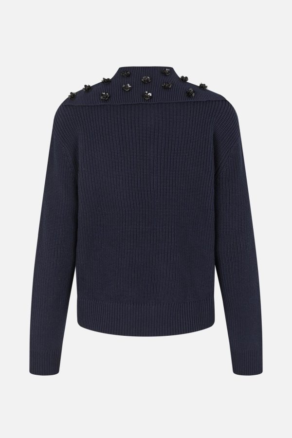 Baum und Pferdgarten Clare Ribbed Knit Sweater with Sequin Details – Women’s Blue Knitwear