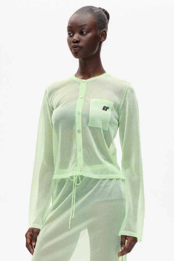 Baum und Pferdgarten Crisje Glitter Knit Cardigan | Women’s Cropped Lettuce Green Knitwear