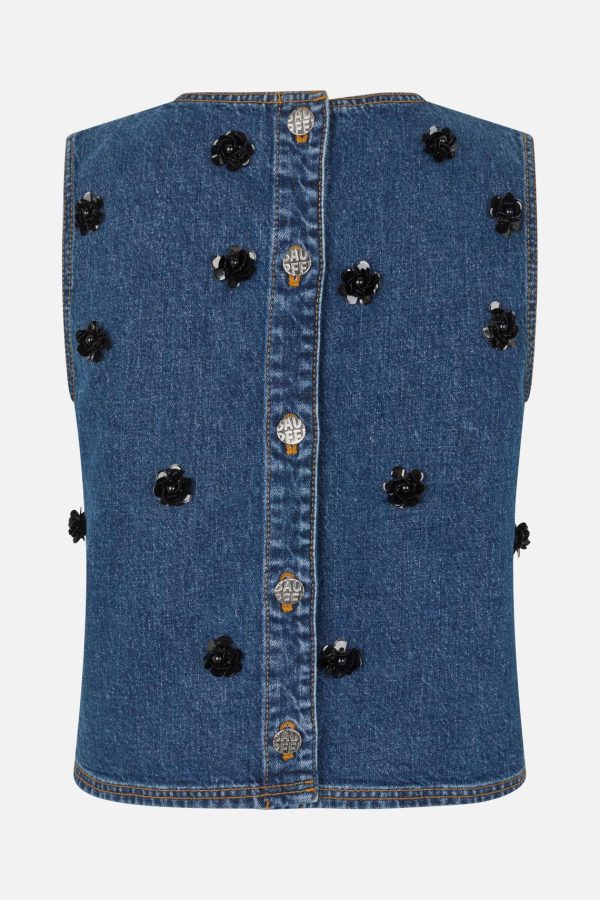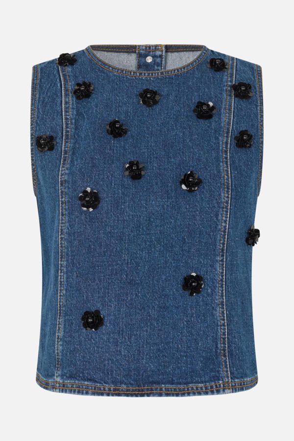 Baum und Pferdgarten Madine Denim Blouse – Women’s Sequined Floral Sleeveless Top