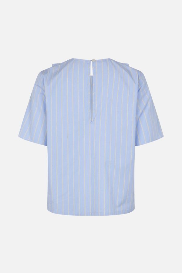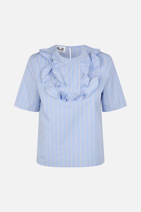 Baum und Pferdgarten Meintje Blouse – Sky Blue Striped Women’s Top with Frill Detail