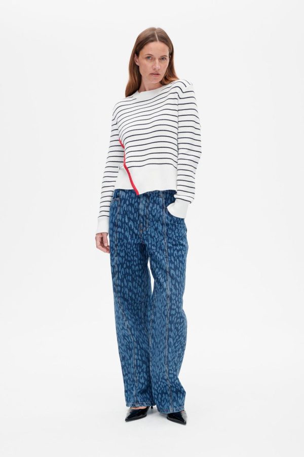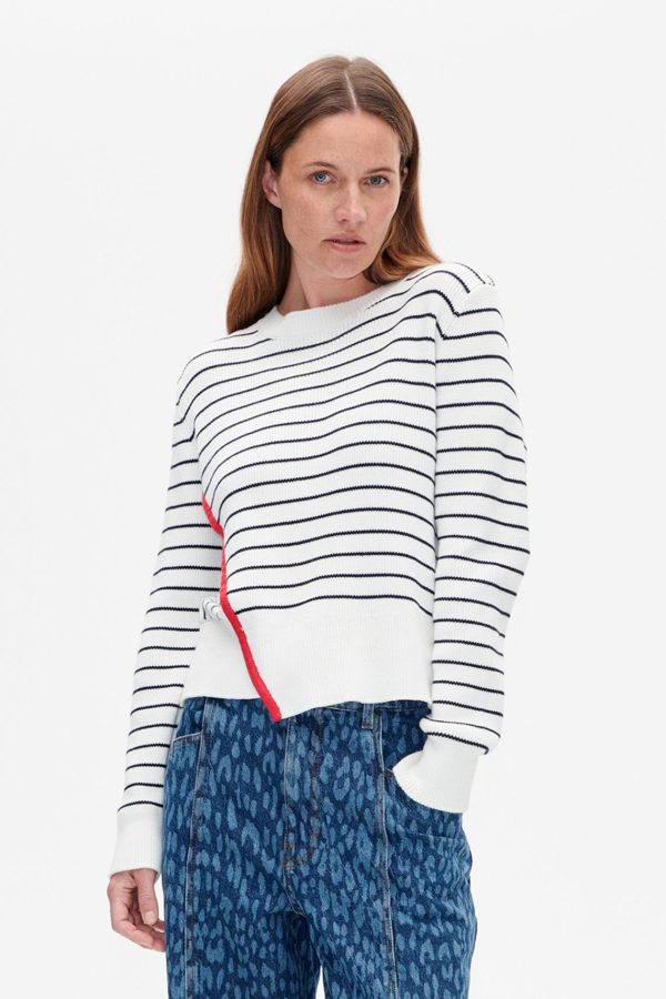 Baum und Pferdgarten Women’s CENTA Organic Cotton Sweater – Crew Neck, Asymmetrical Hem, Striped Knitwear