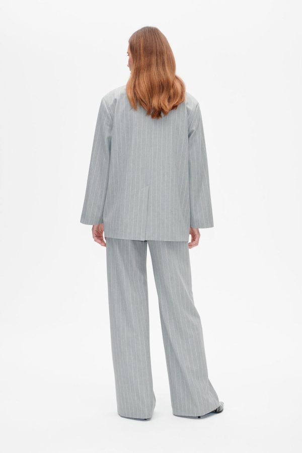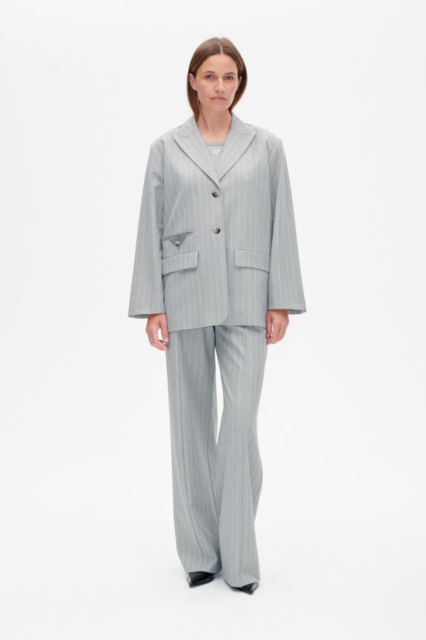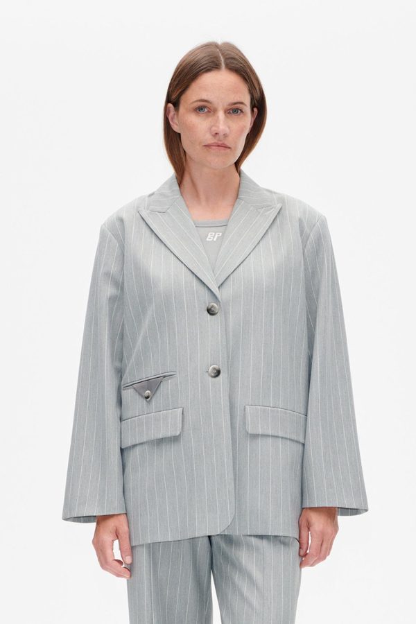 The Babs Blazer is a tailored, classic blazer designed to elevate any outfit with its polished silhouette and refined details. Featuring a notched lapel and structured shoulder pads, this blazer offers a timeless, professional look. With flap pockets and a small slash pocket in the front, it combines practicality with style, making it a versatile wardrobe staple for both work and special occasions.