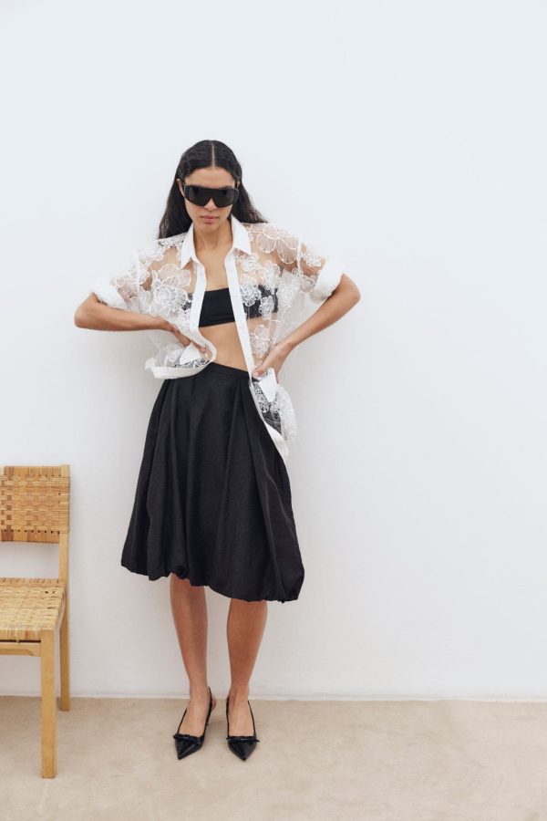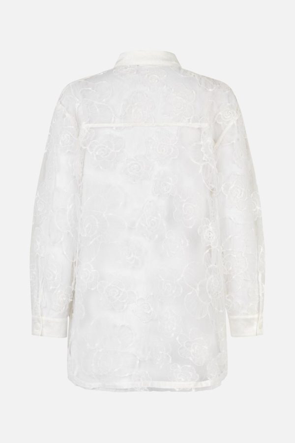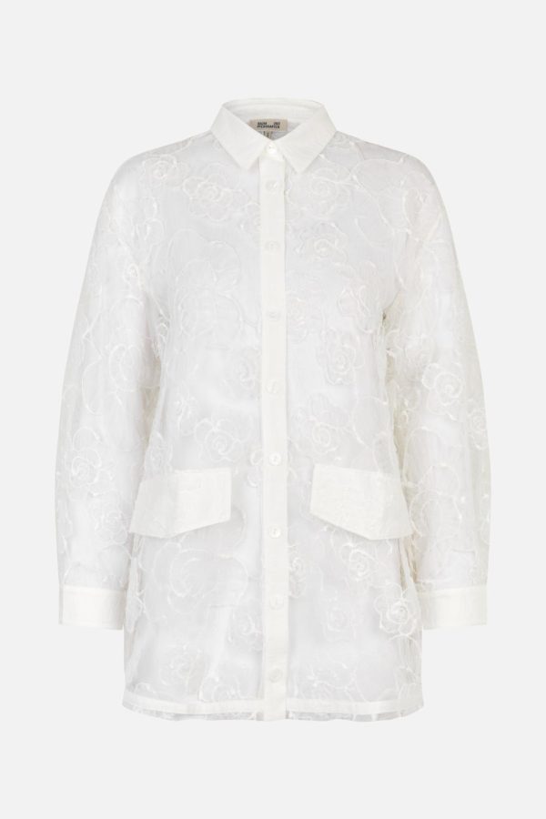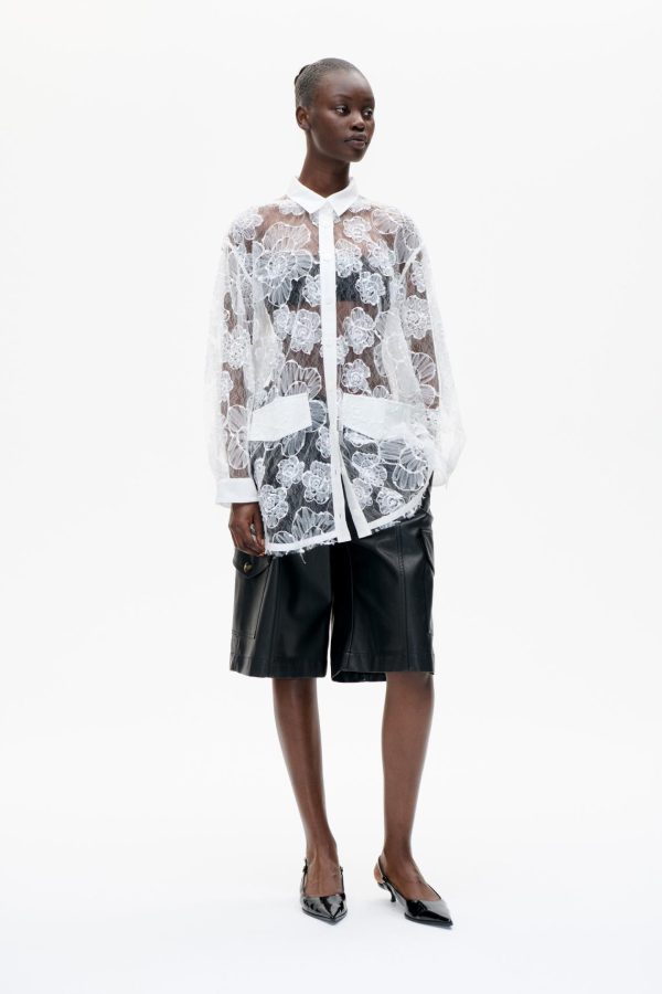 The Annica Shirt is a classic style with a feminine twist, as it’s made in a refined sheer floral lace. The oversized shirt has a timeless look with collar, cuffs and faux pockets at the sides. Style it with a bra or top underneath and add a pair of shorts or a skirt to dress it up.