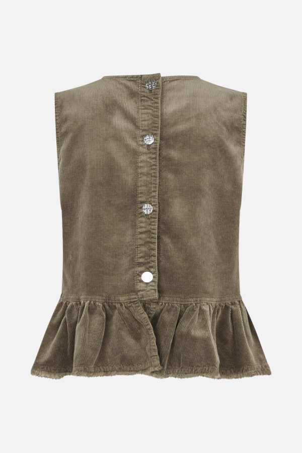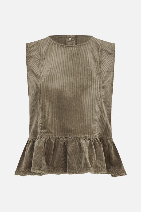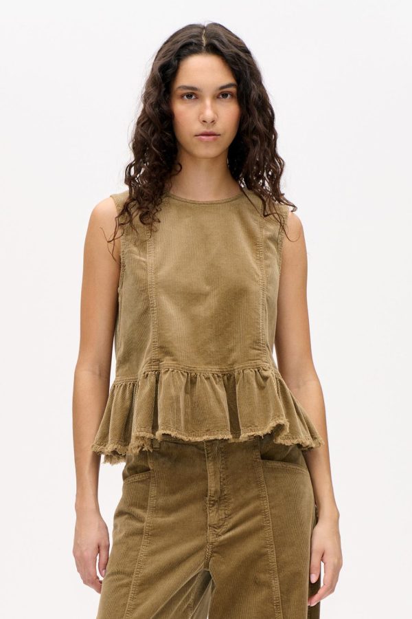 The Madinel Top brings effortless charm with its soft corduroy texture and pretty ruffle at the hem. The sleeveless top has a relaxed fit and button closure down the back, as a cool detail. Style it with jeans or a skirt for an easy everyday look.