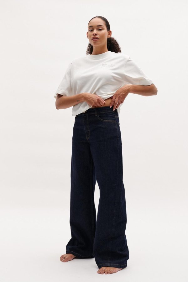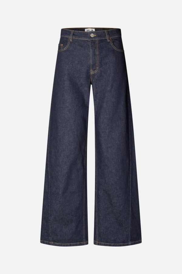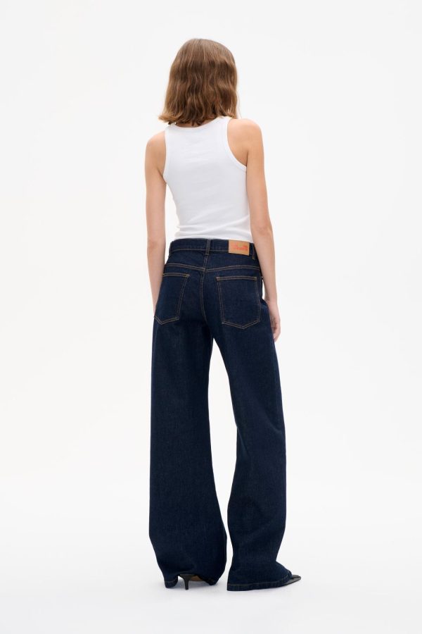 The NO 03 Jeans are a trusty go-to pair with high waist and wide legs. The classic denim jeans have a loose and comfortable straight fit, so you can wear them confidently all day long. As a cool detail, the jeans have a twisted seam down the front of the legs. Dress them up with heels or keep it casual with one of our t-shirts – perfect for any occasion.