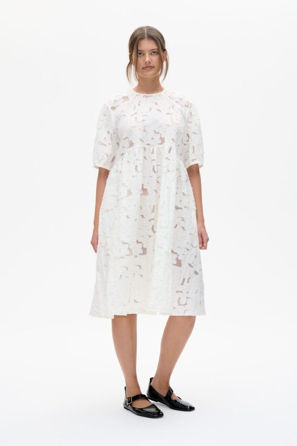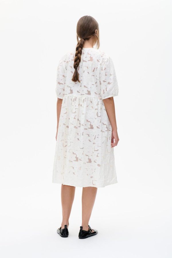 The Agdel Dress, a beautiful semi-sheer midi dress, is crafted in a floral lace for a delicate, timeless look. Featuring voluminous sleeves that add a touch of elegance and hidden side pockets for practicality, this dress effortlessly blends style and function. Perfect for special occasions or everyday wear when you want to feel polished yet comfortable.