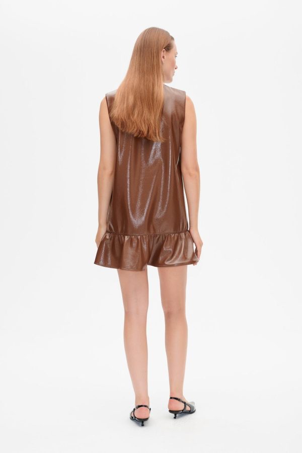 The Agneta Mini Dress combines effortless style with contemporary details. Designed in a classic shift silhouette with an A-line cut and a subtle dropped hem, this mini dress offers a relaxed yet flattering fit. Its patent-style look gives it a modern edge that stands out. Perfect for everything from casual outings to special occasions, this dress effortlessly blends sophistication with a bold, fashion-forward vibe.