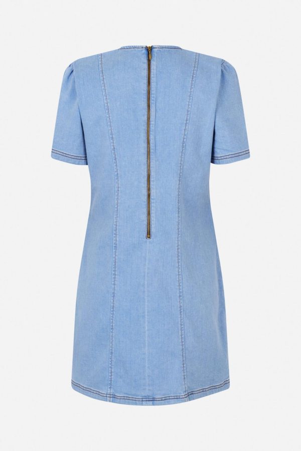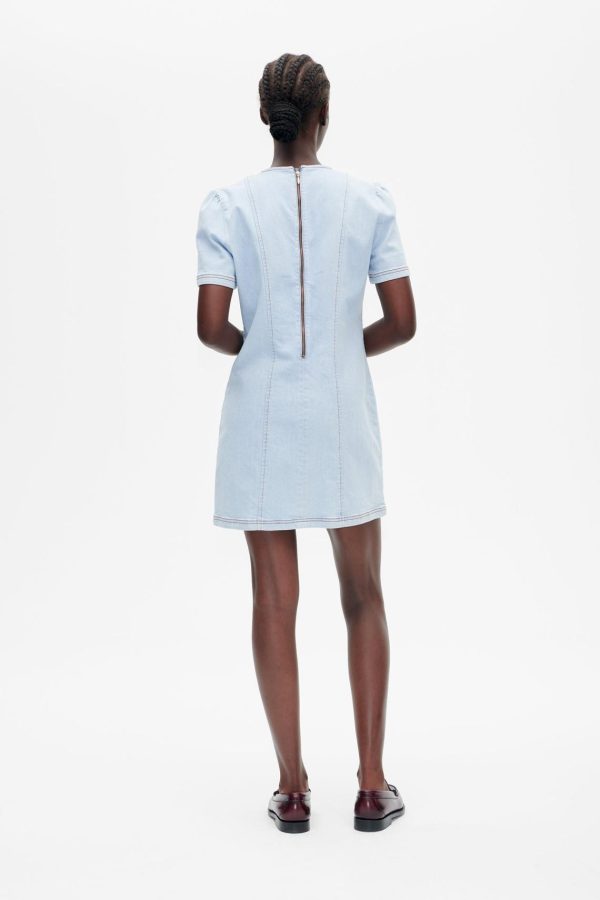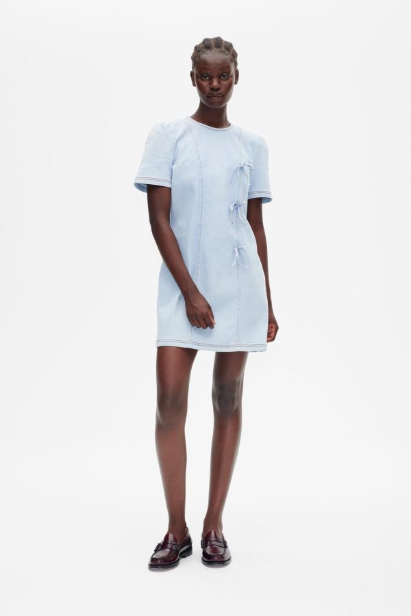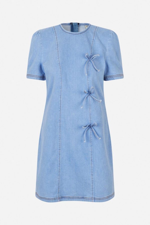 The Amali Dress is a stretchy A-line denim mini dress that effortlessly blends comfort and style. Featuring short, slightly puffed sleeves and bow detailing in the front, this dress adds a playful, feminine touch to your wardrobe and is perfect for both casual and dressed-up occasions.