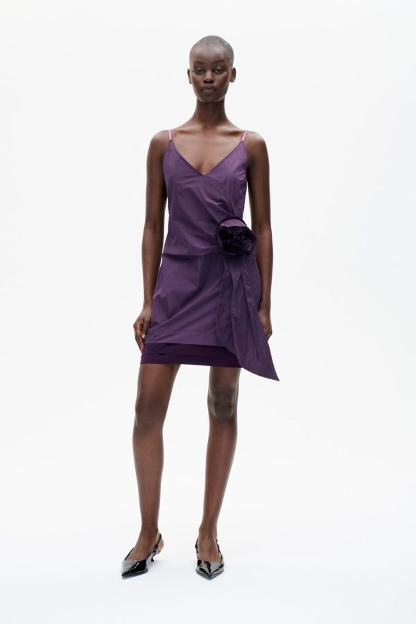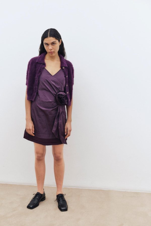 The Andria Dress gives you a classic and romantic feel with a beautiful rosette at the waist. The minidress is made of nylon and has a flattering v-neck and two strips of fabric at the hemline for texture. Complete the look with a pair of heels and get ready for your next event.