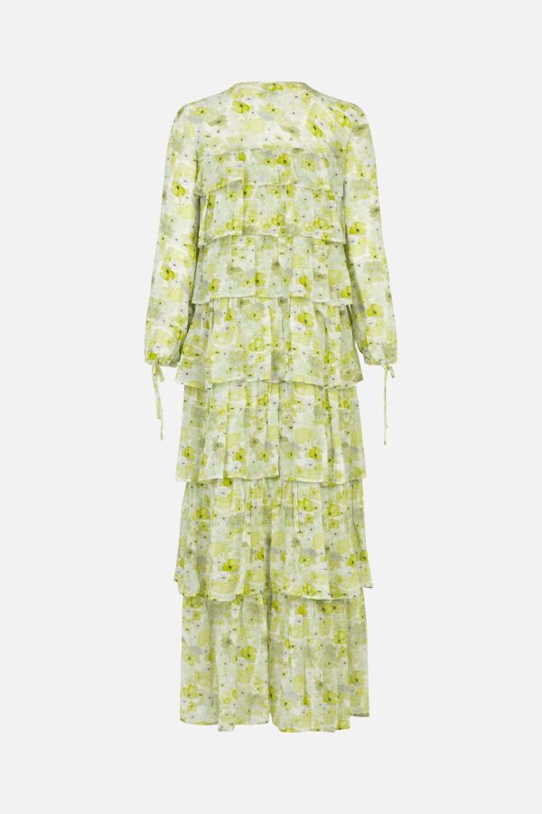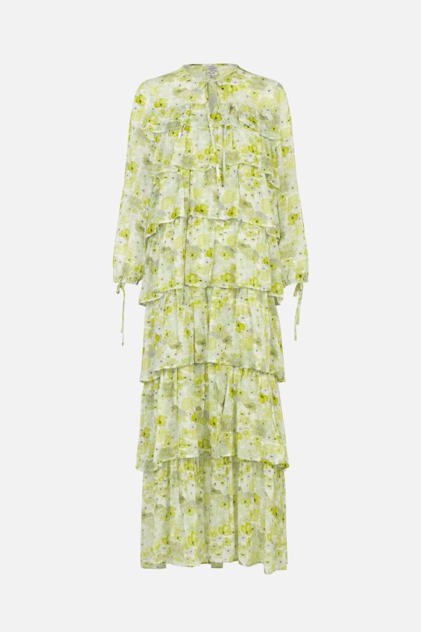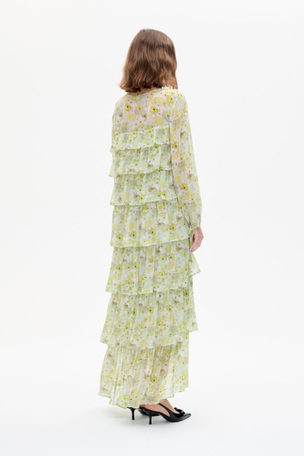 The Arielle Dress is the perfect choice for any event with its floaty ruffled tiers throughout the body and skirt. The long dress is sheer at the shoulder and arms, and has ties at the neck and wrists. Wear it with heels to elevate the look or add some sneakers to keep it casual.