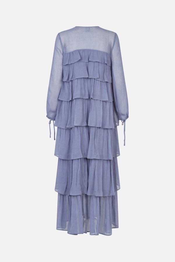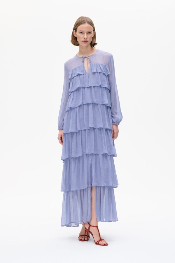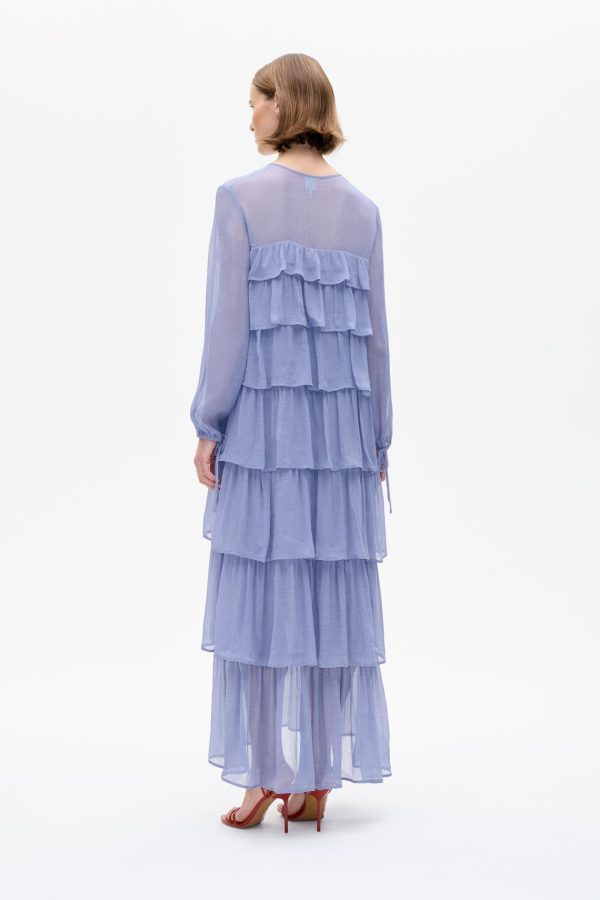 The Arielle Dress is the perfect choice for any event with its floaty ruffled tiers throughout the body and skirt. The long dress is sheer at the shoulder and arms, and has ties at the neck and wrists. Wear it with heels to elevate the look or add some sneakers to keep it casual.