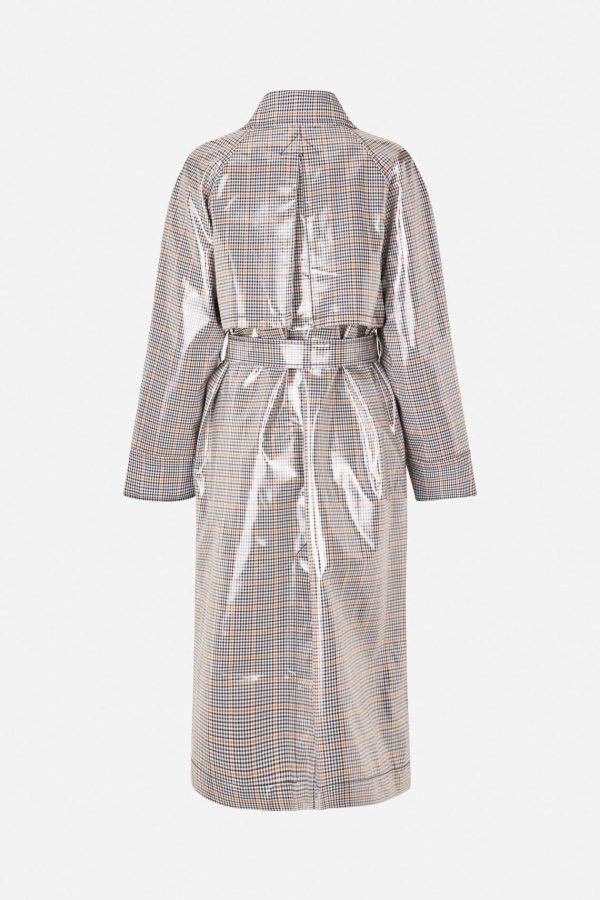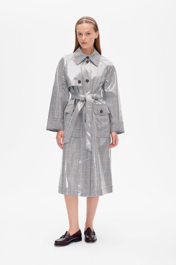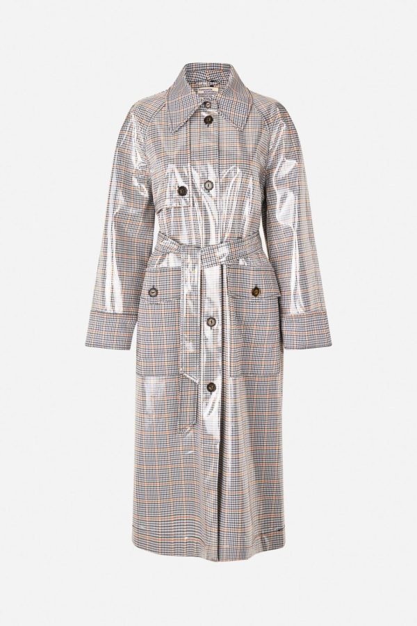 The Dorothy Coat is a modern take on the timeless trench coat, featuring a sleek patent finish that adds a bold and contemporary edge. Designed to be waterproof, it seamlessly combines practicality with style, making it ideal for rainy days or bold fashion statements. Complete with classic patch pockets, a storm flap, and a back vent, this coat preserves the iconic trench details while introducing standout elements for added functionality and flair.