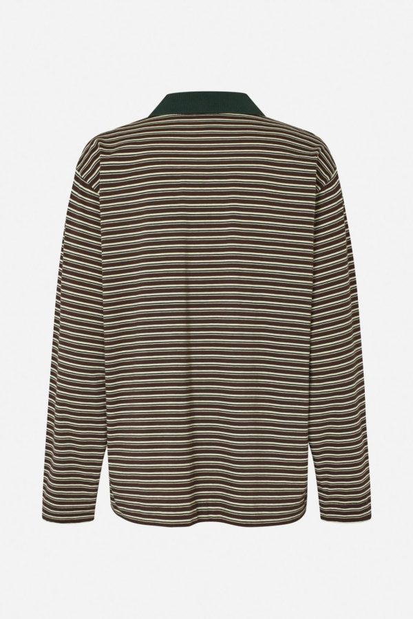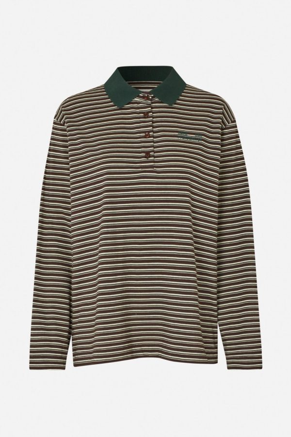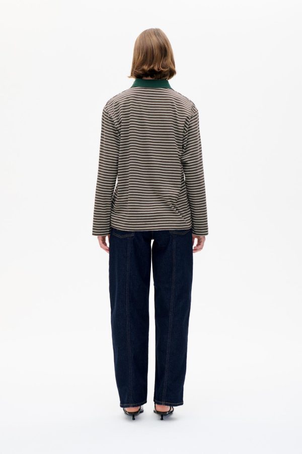 Baum und Pferdgarten Women’s Jivan Striped Polo Top – Soft Cotton Terry, Long Sleeve, Button Closure