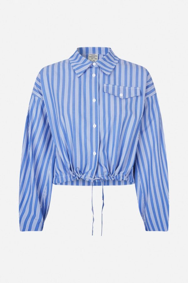 The Bryce Shirt is a cropped cotton shirt that gives a contemporary twist to the classic design. It features a drawstring hemline with a tie at the front, creating a flattering, adjustable fit at the waist. A split in the back adds a breezy, relaxed feel, while the chest pocket offers a practical yet stylish detail. The voluminous sleeves complete the look, adding a touch of bold sophistication to this versatile piece.