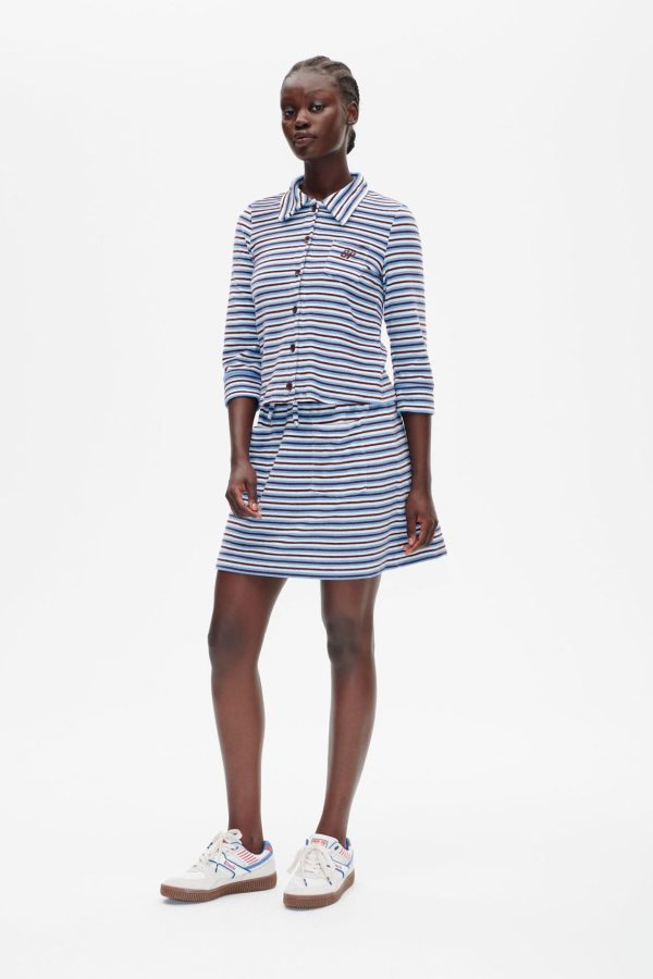 The Jannike Cardigan is a striped, classic cardigan crafted from soft cotton terry for ultimate comfort and style. Featuring a short collar and a chest pocket with an embroidered BP logo, it effortlessly blends timeless design with a modern touch. Cozy yet refined, the Jannike Cardigan pairs perfectly with denim jeans or a skirt and sneakers for casual, everyday style.