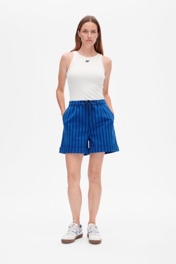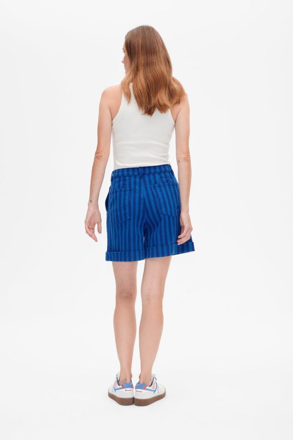 The Nessa Shorts are striped denim shorts that effortlessly blend comfort and style. With a high-waist and loose fit, they create a relaxed yet flattering silhouette. Thoughtful details like folded cuffs, side and back pockets, and a drawstring tie at the waist add both functionality and a playful touch. Pair the Nessa Shorts with a classic T-shirt and sneakers for a laid-back daytime look, or style them with our Bina Jacket and sandals for a breezy summer outfit.