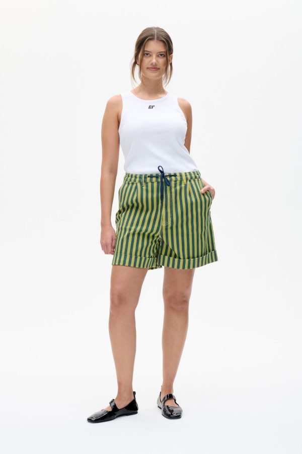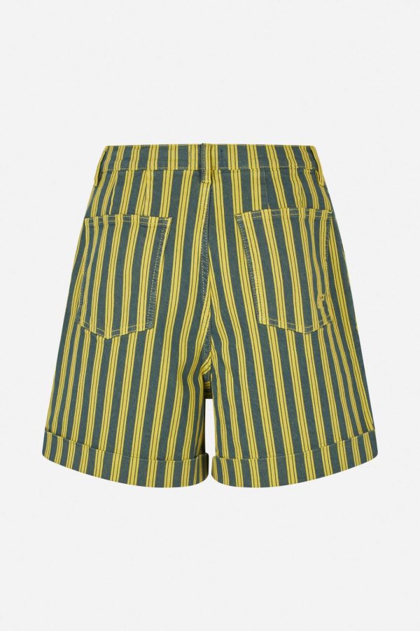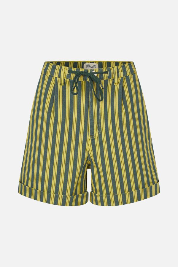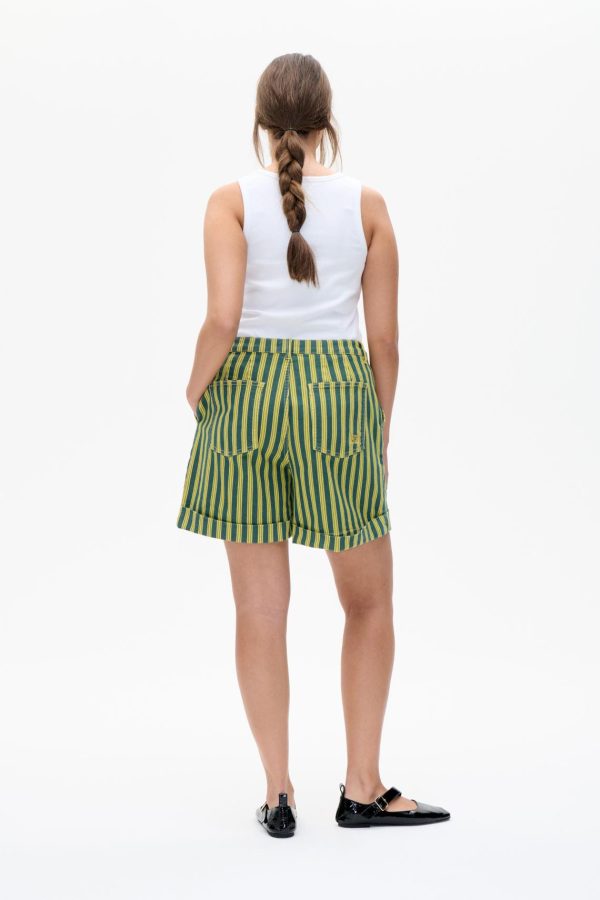 The Nessa Shorts are striped denim shorts that effortlessly blend comfort and style. With a high-waist and loose fit, they create a relaxed yet flattering silhouette. Thoughtful details like folded cuffs, side and back pockets, and a drawstring tie at the waist add both functionality and a playful touch. Pair the Nessa Shorts with a classic T-shirt and sneakers for a laid-back daytime look, or style them with our Bina Jacket and sandals for a breezy summer outfit.