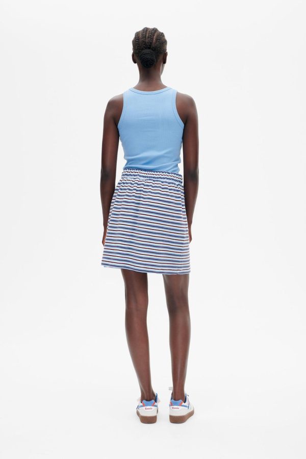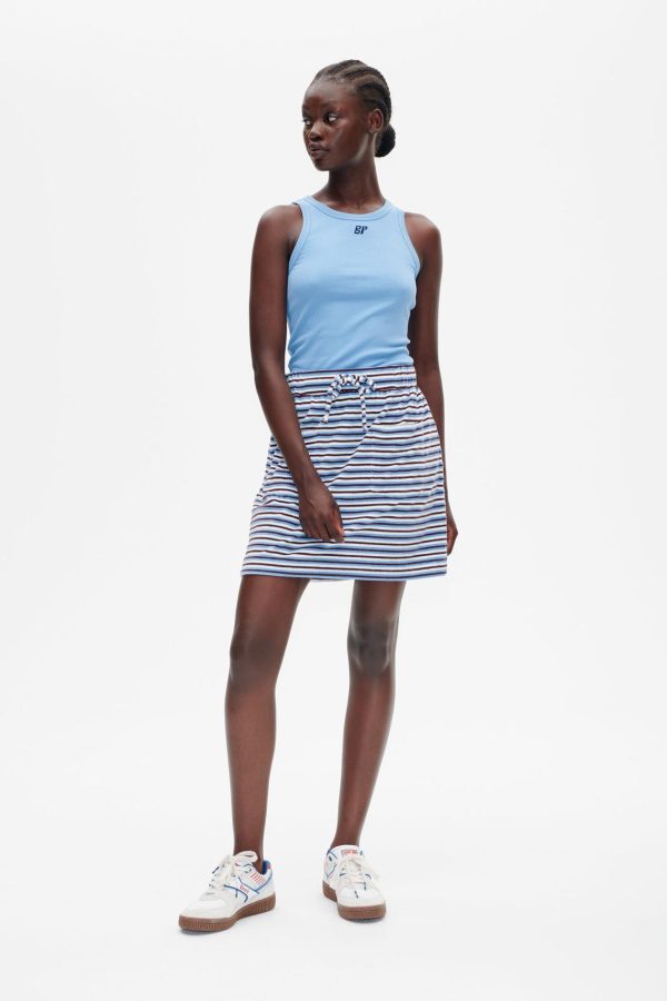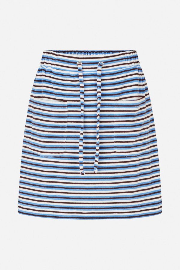The Javanna Skirt is a striped mini skirt that effortlessly blends casual comfort with a sporty, playful vibe. Crafted from soft cotton terry, it features an elasticated waistband with a drawstring for a customizable and secure fit. Functional yet stylish, the patch pockets on the front add a chic touch, making this skirt perfect for relaxed, everyday outfits.