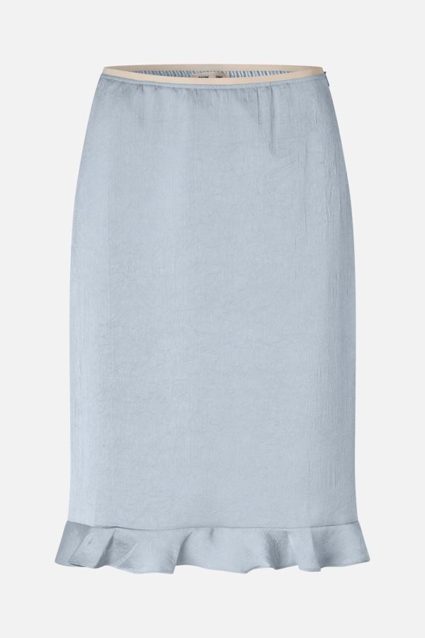 The Sesse Skirt is a sophisticated yet playful piece made in our classic crinkled satin fabric. The timeless skirt is fully lined and has a high waist with ruffled hem for a flattering silhouette. Style it with one of our shirts for a polished look or pair it with our Benthe Blazer for an effortlessly coordinated outfit.