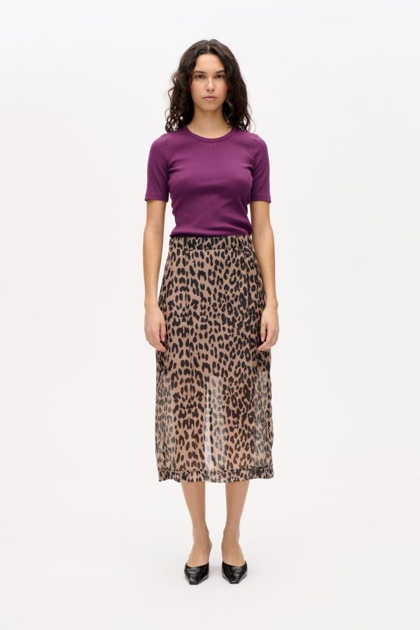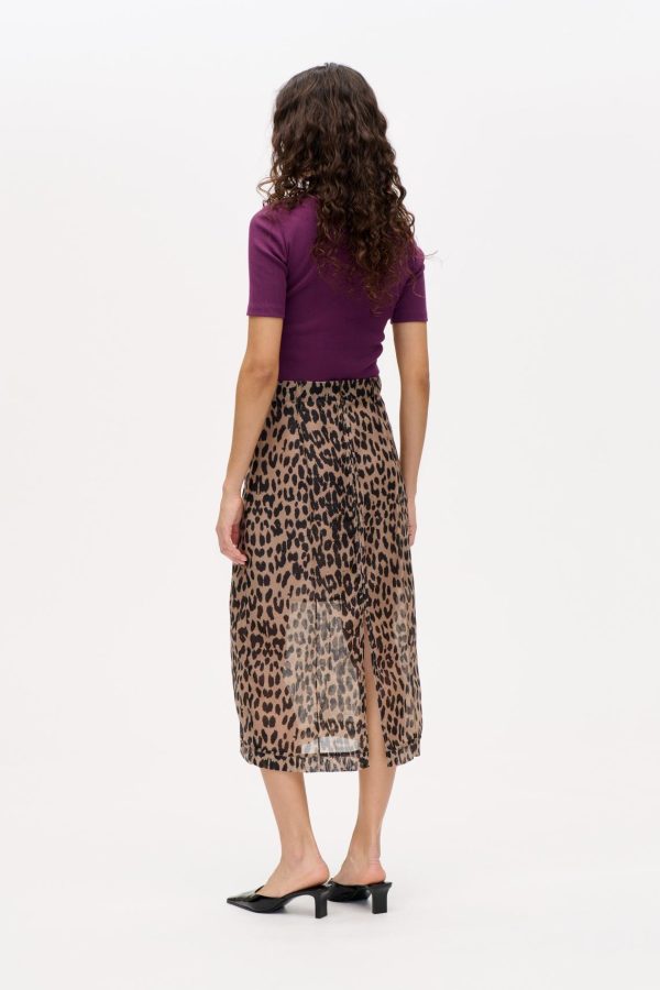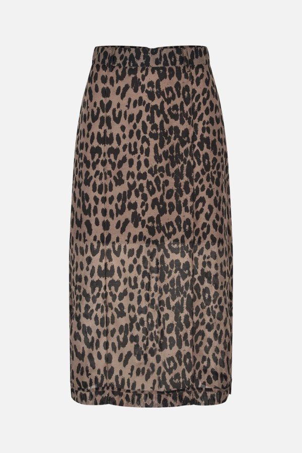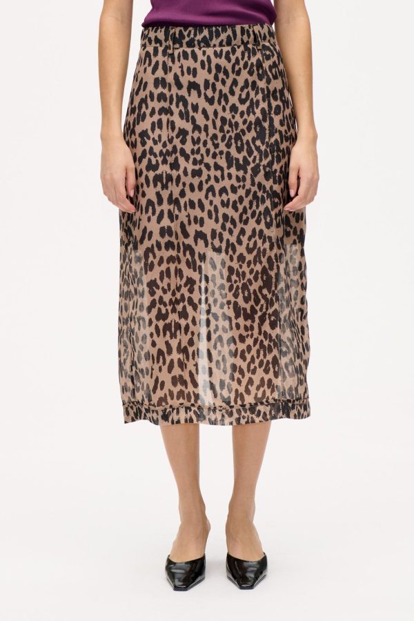 The Shevin Skirt is a statement piece made in lightweight organza with a playful leopard print. The high waist and midi length give the skirt an elegant and flowy silhouette. The skirt is lined with a miniskirt underneath the sheer printed organza for some extra coverage. It also has belt loops at the waist and a slit at the back for added movement. You can easily style it with a t-shirt and knit for a cool everyday look or dress it up for a night out.