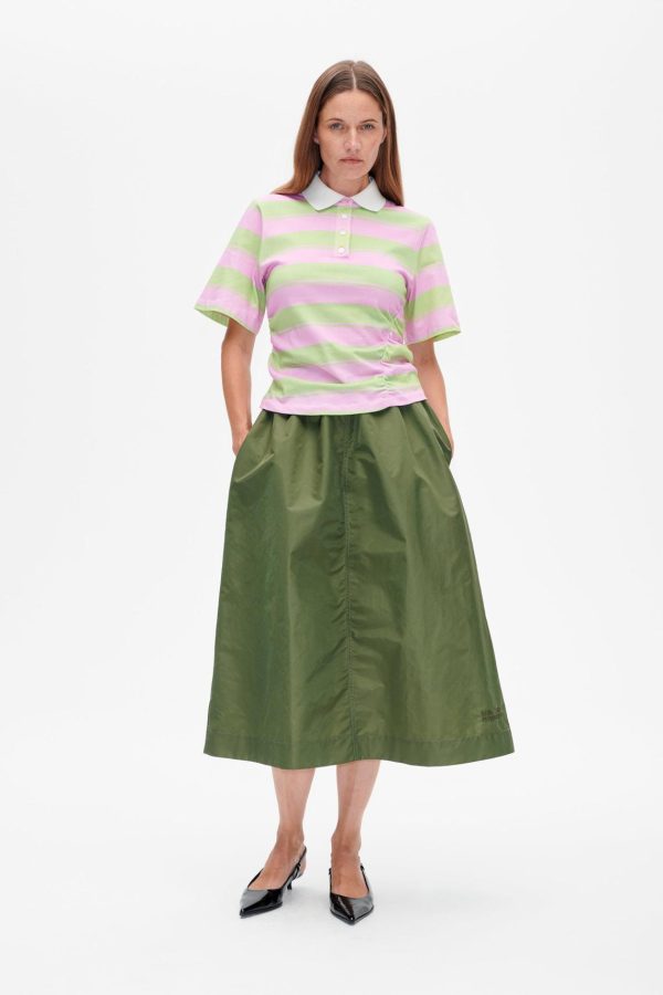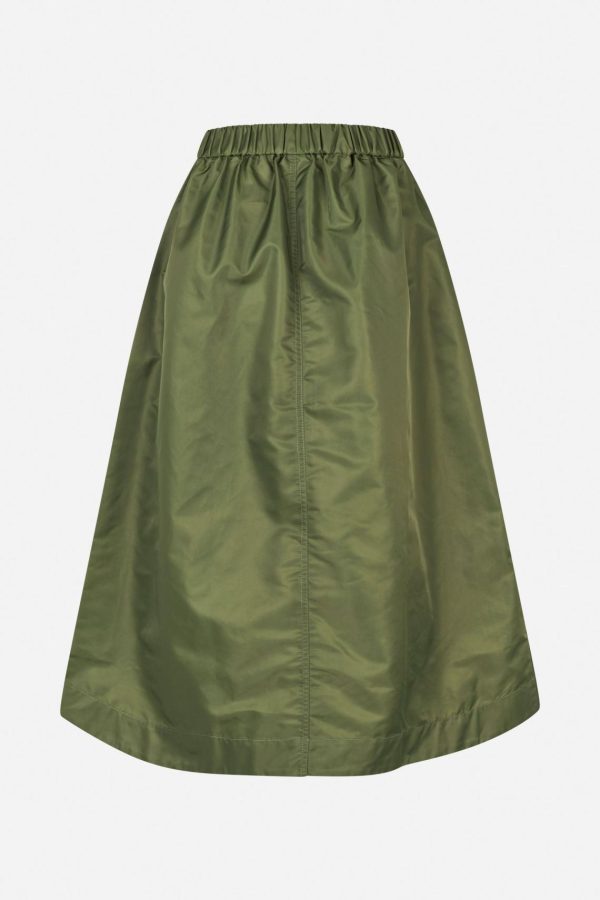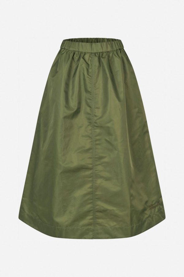The Sibella Skirt is an A-line, midi-length skirt crafted from lightweight nylon, combining a sporty edge with timeless elegance. Featuring a high waist and an elasticated waistband, it offers a comfortable and flattering fit. Hidden side pockets add functionality, while the embroidered logo at the bottom provides a subtle branded detail.