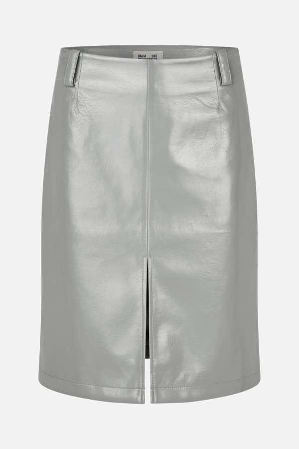 The Signa Skirt is a pencil skirt crafted from patent-style material, offering a sleek and modern edge to a timeless silhouette. Designed with a midi-length, high-waist fit, it flatters the figure while the front slit adds a touch of allure. Complete with belt loops, it pairs perfectly with accessories like the Katarina Bag for a stylish, statement-making look. A zip closure at the side and full lining ensure comfort and practicality.