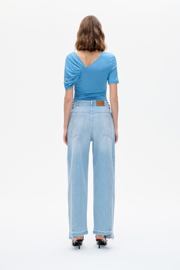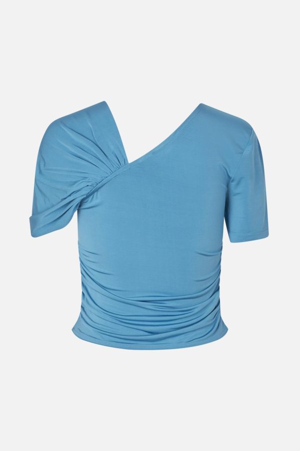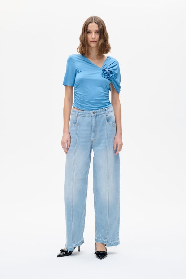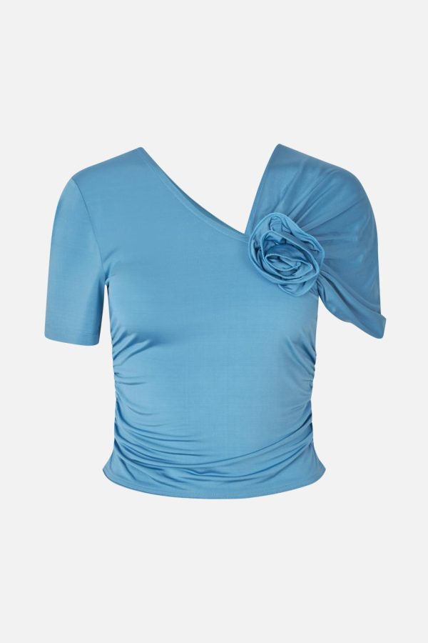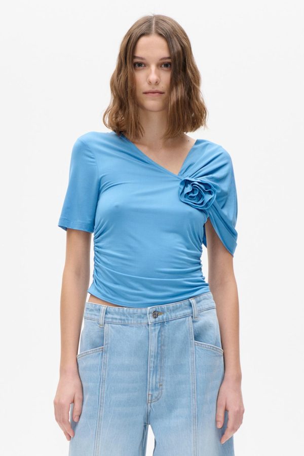 The Jansje Top is a statement piece with its beautiful rosette at the chest. The short-sleeved top has a fitted silhouette and flattering ruching details at the shoulder and sides, which makes it effortlessly chic. Style it with jeans and heels for an elegant everyday look.