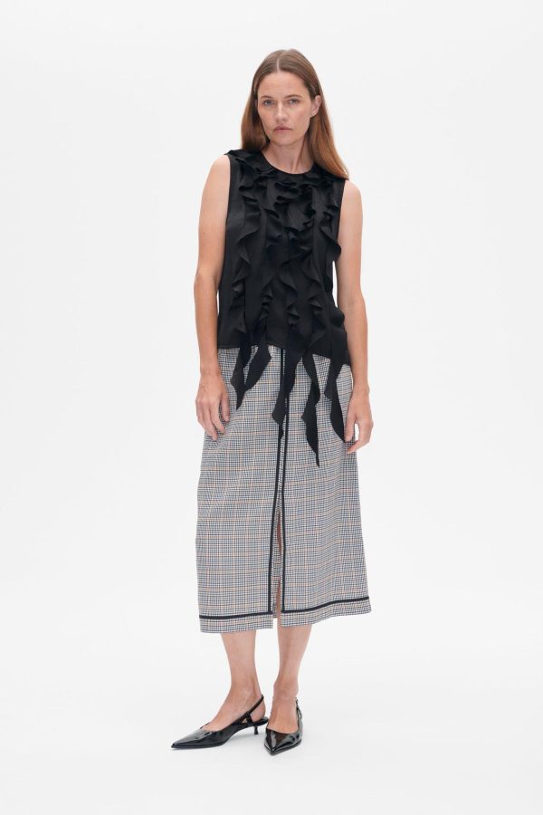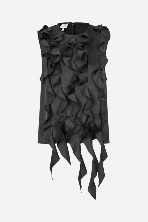 The Mavi Top features vertical ruffles down the front, adding a playful elegance to its straight fit silhouette. With a button closure and keyhole opening at the back, it offers a refined touch that makes it versatile for any occasion. Pair the Mavi Top with high-waisted trousers and heels for an elevated look, or style it with denim shorts and sneakers for a casual, laid-back vibe.