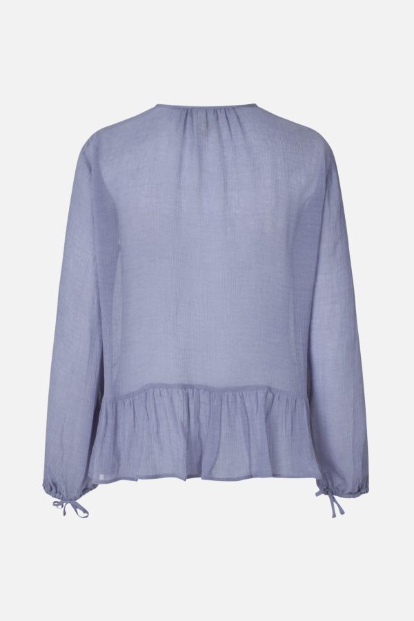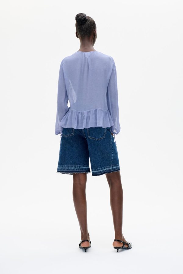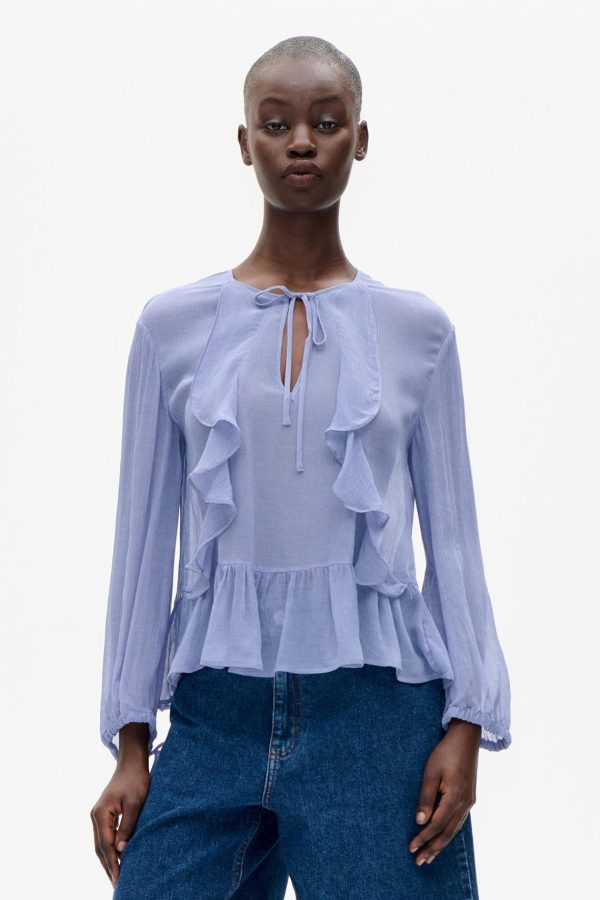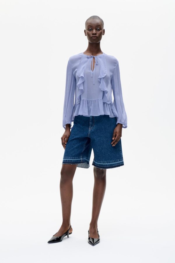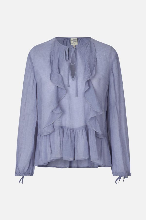 The Mikaela Blouse is a flowy and elegant piece, as it’s made is a lovely lightweight and slightly sheer material. The blouse has pretty ruffle details down the front and at the bottom hem, and can be tied at the neck and wrists to your liking. Style it with a pair of jeans or shorts to complete the classic look.